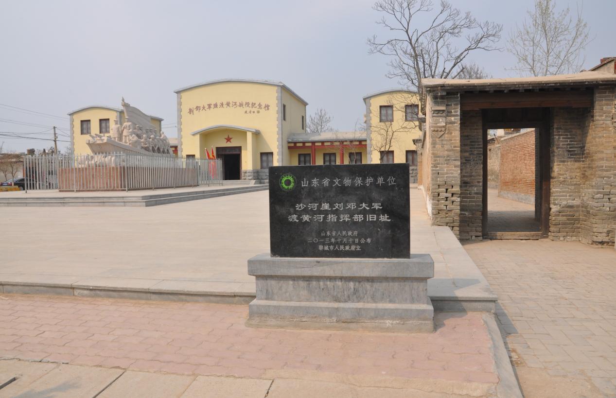 劉鄧大軍強渡黃河戰役紀念園位于陽谷縣壽張鎮沙河崖村,占地面積約3430平方米,共分為渡河廣場、劉鄧大軍強渡黃河戰役紀念館和劉鄧大軍渡河指揮部舊址三部分。1947年劉伯承司令和鄧小平政委正是在這里,指揮著12萬晉冀魯豫野戰軍強渡黃河,將蔣介石苦心經營的黃河防線土崩瓦解,吹響了人民解放軍由戰略防御轉為戰略反攻的號角。