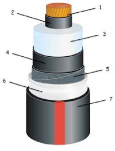 導體采用用銅線或鋁線絞制而成,導體截面800mm2及以下采用層層緊壓方式,導體圓整度好,緊壓系數高。導體截面1000mm2及以上采用分割導體,有效的減少了導體的集膚效應,提高電纜的載流量。對于分割導體我公司生產最大截面為3000mm2導體。 導體中可絞入吸水膨脹材料,以實現沿導體的縱向阻水。