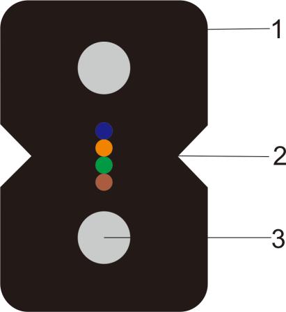 接入網用蝶形引入光纜(室內布線用)是將光通信單元(光纖)處于中心,兩側放置兩根平行非金屬加強件(FRP或KFRP)或金屬加強構件,最后,擠制黑色或彩色聚氯乙烯(PVC)或低煙無鹵材料(低煙,無鹵,阻燃)護套而成。